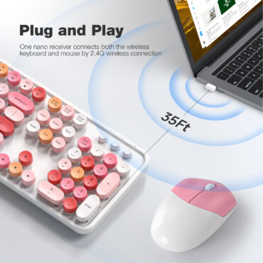 Enjoy vintage style with modern tech. Connect up to 3 devices via Bluetooth 5.1, switch instantly, and type smoothly with round colorful keycaps and power-saving mode.