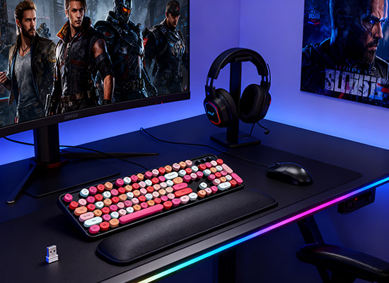 Our wireless keyboard and mouse combo has become the top choice for numerous office workers. The clever integration of retro design and colorful keycaps injects a unique style into daily work, creating a distinctive office experience. With comfortable key feedback and precise mouse control, users can efficiently complete various work tasks and easily improve work efficiency, whether they are working from home or in a co-working space.