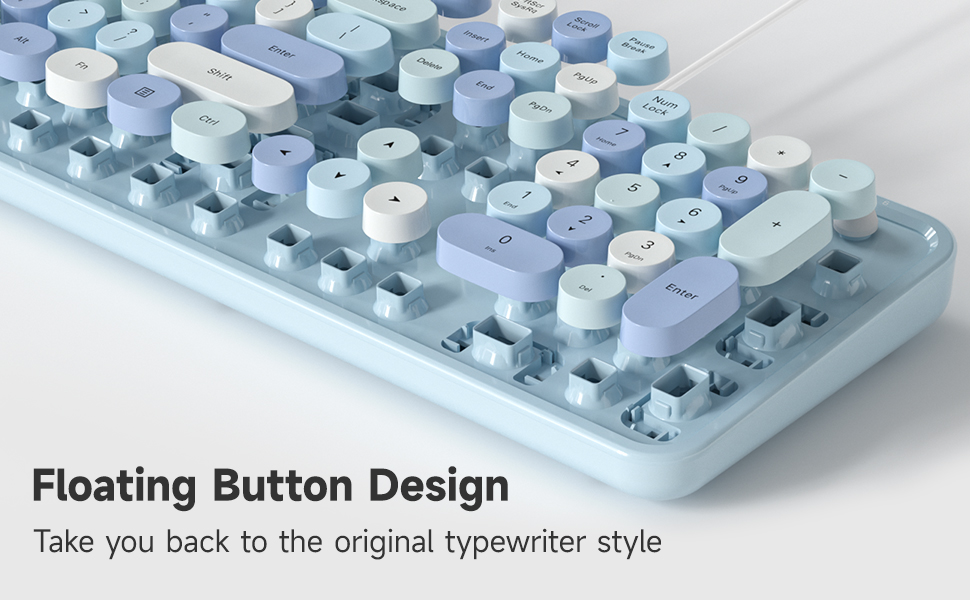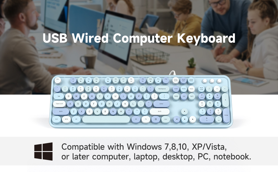 MOFII SK-623 Large Print USB Wired Keyboard,Retro Keycaps,Blue Colorful