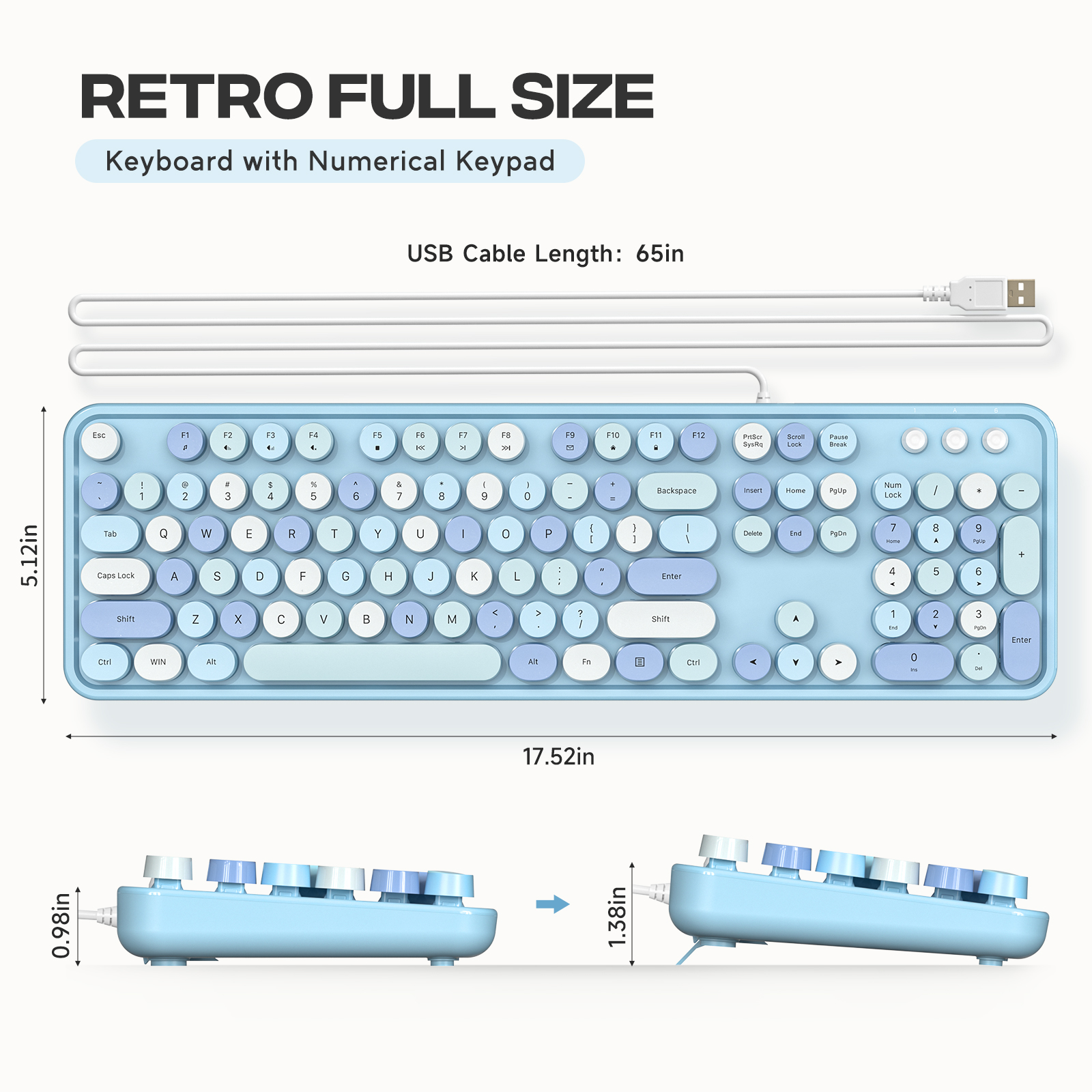 MOFii SK-623 Retro Blue USB Wired Keyboard