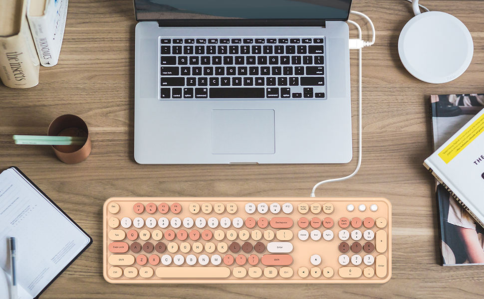 MOFII SK-623 USB Wired Keyboard – Retro Beige for Home & Office