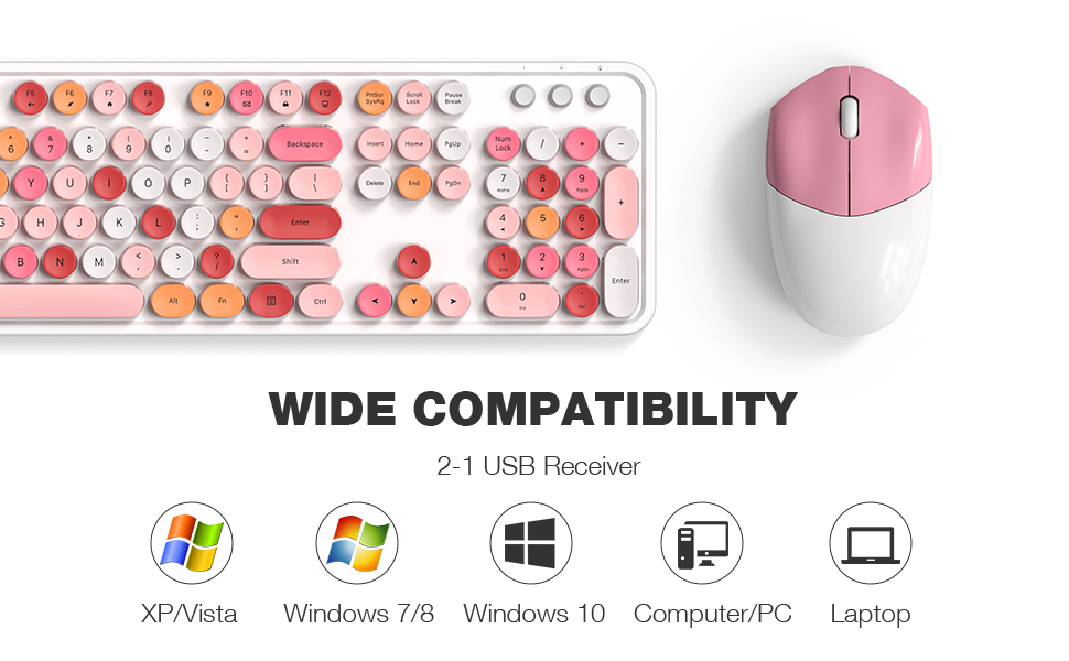 MOFII White Wireless Keyboard and Mouse Combo,Full size Retro 2.4Ghz Cute Keyboard