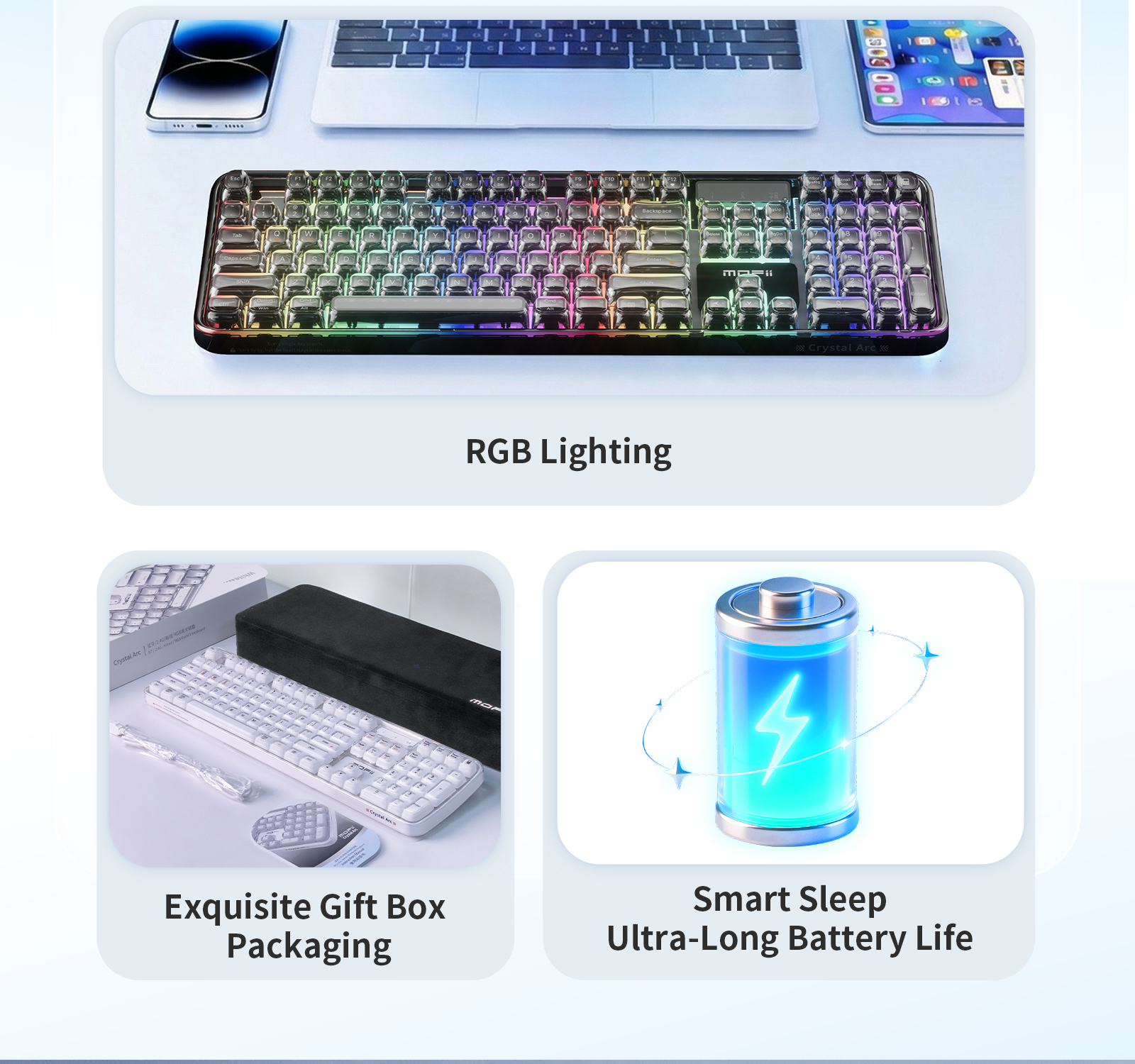Be the first to review “MOFII Wireless Computer Keyboard with RGB Backlit, Tri-Mode Bluetooth 5.0/USB-C/2.4GHz Connected”