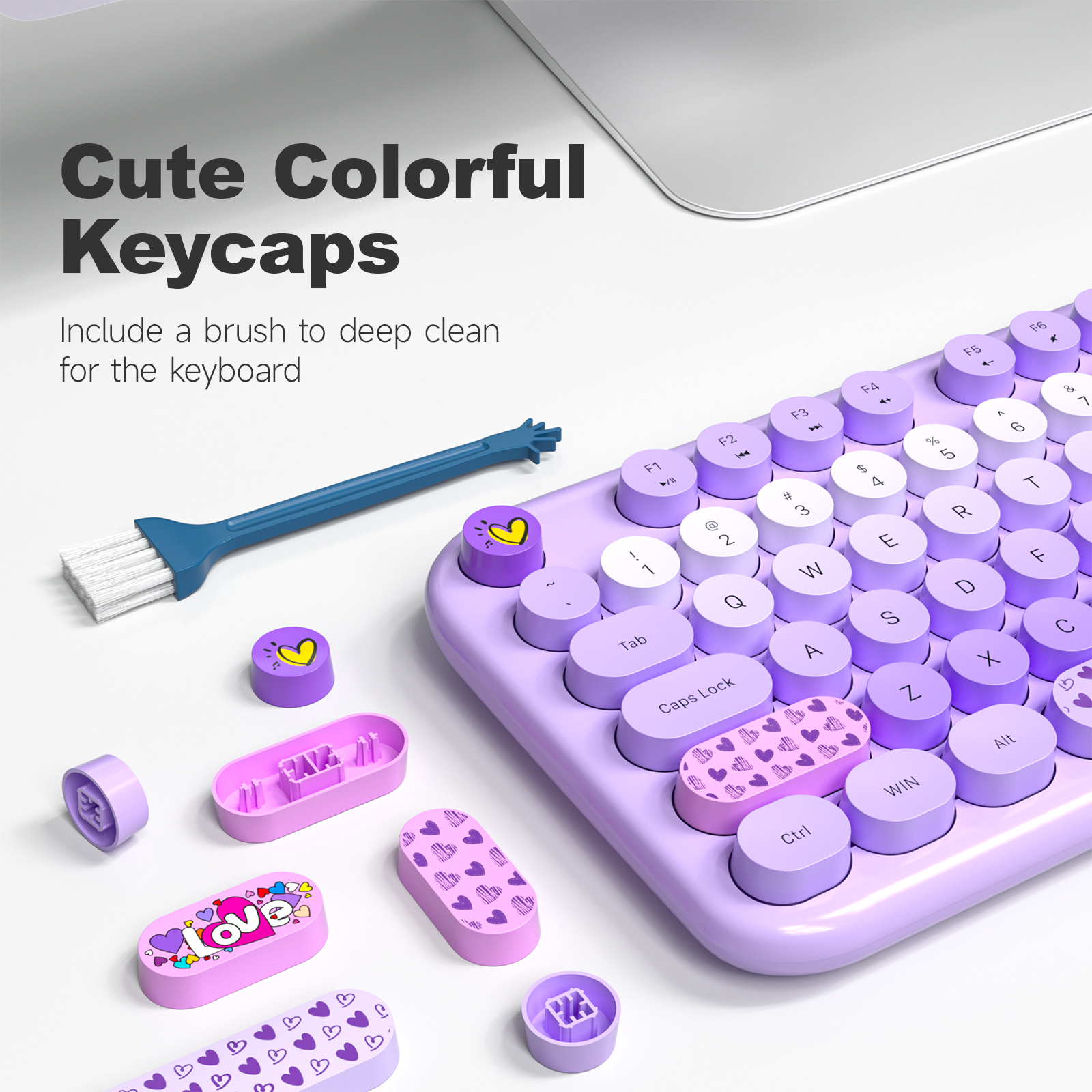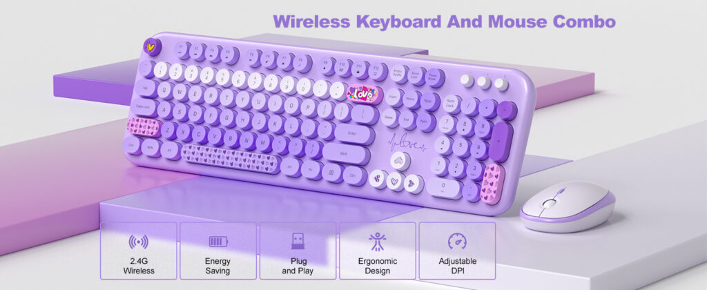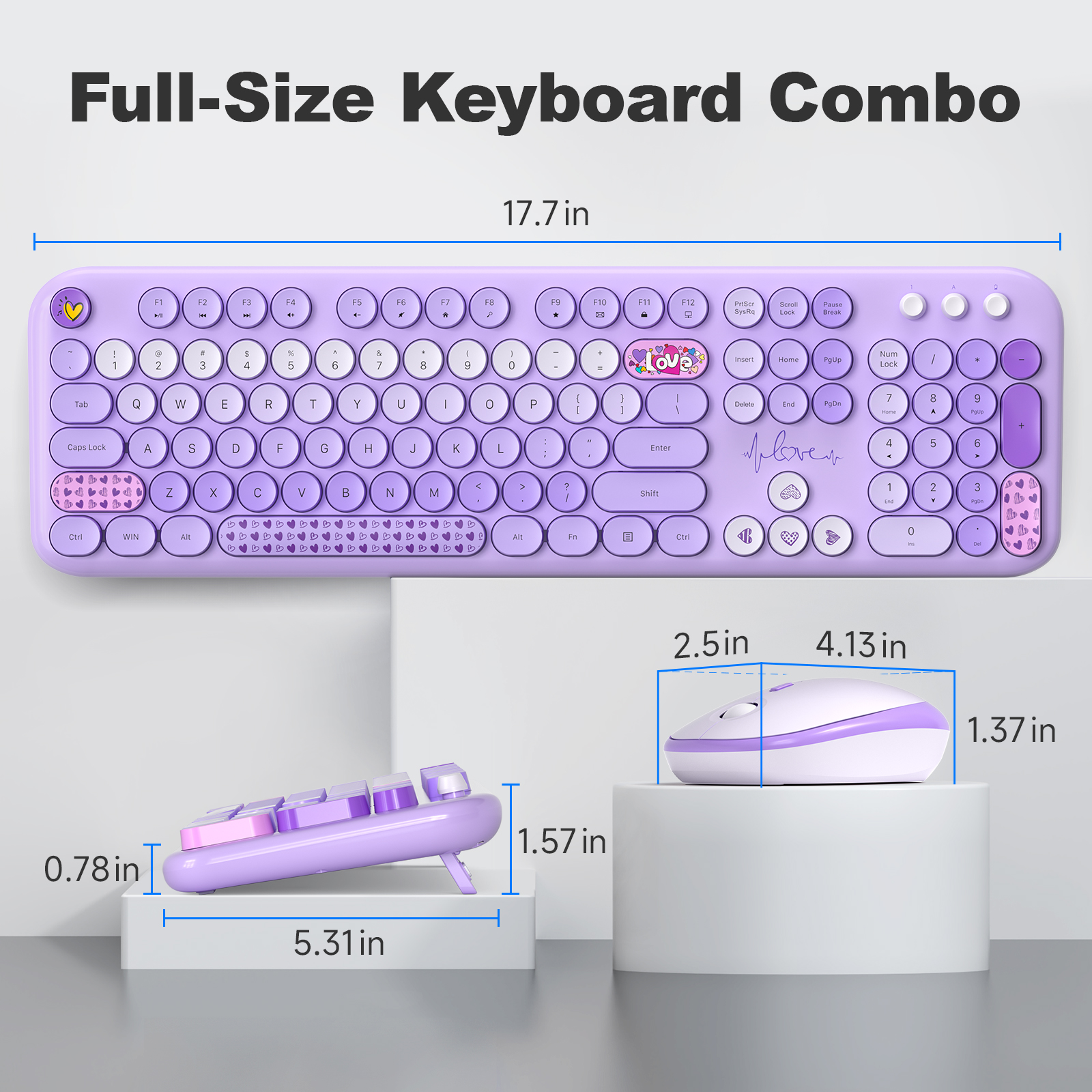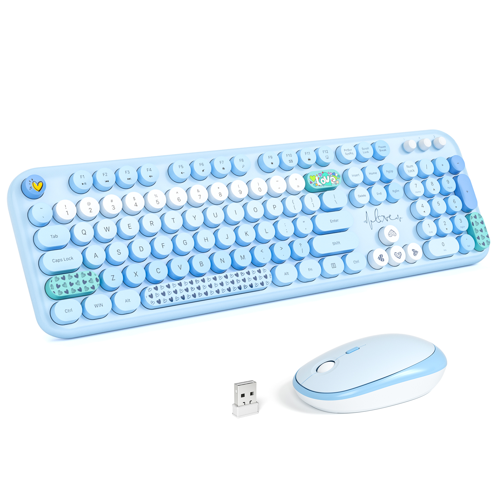 · Wide Compatibility: The colorful full-size keyboard with a number pad and mouse combo adds vibrancy to your desktop and boosts efficiency. Compatible with PCs, desktops, and laptops. · Reliable 2.4G Wireless, Plug and Play: Enjoy stable, anti-interference wireless freedom up to 10 meters (33 feet) away. Just plug and play, with the USB receiver stored inside the mouse. · Ergonomic Design: The keyboard features a folding holder and anti-slide pads for an optimal slope, reducing wrist strain during long typing sessions. The contoured mouse offers hours of comfort. Removable keycaps make cleaning easy. · Auto-Sleep Feature: Powered by 1 AA battery each, the keyboard and mouse enter auto-sleep mode after 8-10 minutes of inactivity, extending battery life up to 18 months (varies by usage). · Colorful & Ideal Gift: MOFII offers high-quality, colorful wireless keyboard and mouse combos, perfect for office or home use. Great as a gift for birthdays, Christmas, or New Year. Enjoy a 30-day money-back guarantee and a 12-month warranty.