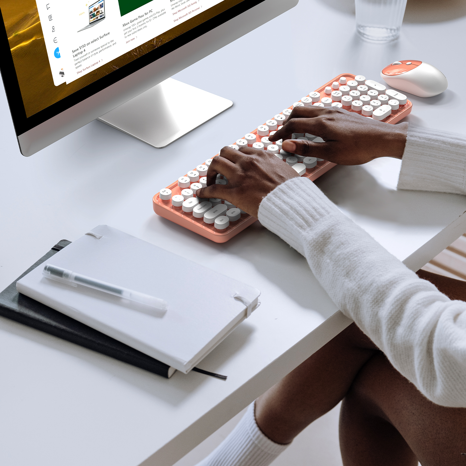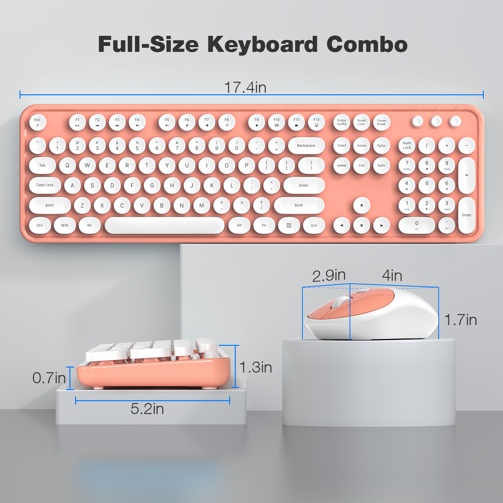 Wireless Keyboard and Mouse Combo, MOWUX Full Size Typewriter Retro Round Computer Keyboard, Mouse Wireless, Plug and Play, for Laptop, PC, Computer